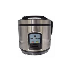 Panela de arroz elétrica com recipiente interno antiaderente, sistema de aquecimento automático que mantém o arroz quentinho após o cozimento. Design em aço inoxidável.Lâmpada piloto