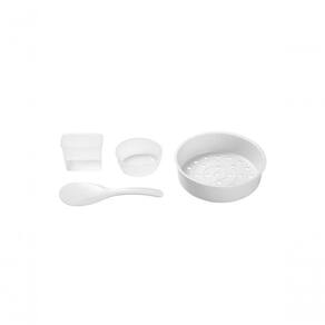 Panela de arroz elétrica com capacidade de 5 xícaras (1 litro), revestimento antiaderente, função manter aquecido, acompanha colher, copo medidor e bandeja para preparo no vapor.Lâmpada piloto