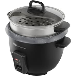 Com apenas um botão, você prepara arroz soltinho e pode também explorar outras receitas como legumes no vapor, arroz temperado ou risotos.