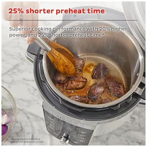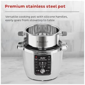 Panela elétrica multifuncional Instant Pot PRO Max 10 em 1 com funções de pressão, lenta, refogar, vapor, sous vide, arroz, iogurte, aquecer, assar e NutriBoost. Integração com aplicativo Instant Connect e panela de aço inoxidável com núcleo de alumínio.Lâmpada piloto