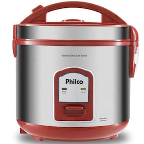 Alimento tradicional da culinária brasileira, o arroz é apreciado em quase todas as casas espalhadas pelo país. Entretanto, há diversas maneiras de prepará-lo, com diferença de ingredientes, temperos e, agora, de forma de preparo. Tenha mais praticidade e facilidade ao preparar seus alimentos com a Panela Elétrica de Arroz Philco! Com uma capacidade para cozinhar até 5 xícaras de arroz, a Panela Elétrica de Arroz Philco proporciona também praticidade na hora de refogar alimentos e até cozinhar legumes e verduras no vapor ao mesmo tempo em que cozinha o arroz, garantindo menos tempo no preparo das suas refeições. A Panela Elétrica de Arroz Philco vem acompanhada de bandeja perfurada que permite o cozimento de legumes e verduras no vapor e um copo medidor para o preparo das refeições na medida certa, além de coletor de água que evita o acúmulo de água na tampa da panela. Muito segura, possui um sistema de desligamento automático e podendo ativar a função manter aquecido, evitando que queime os alimentos, tampa vedada com alça, saída de vapor e botão de travamento, além de tigela antiaderente, que facilita a limpeza após o uso. O cordão de energia é removível, permitindo que você sirva os alimentos onde quiser. Mais praticidade no seu dia a dia com a Panela Elétrica de Arroz Philco.