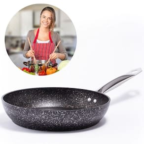 Panela de Cerâmica Indução, Não Gruda FRIGIDEIRA ANTIADERENTE Explore a frigideira ultra antiaderente, revestida 3x com pedra mineral de granito premium e reforçada com diamantes para máximo desempenho no cozimento. Liberação de alimentos fácil e sem necessidade de óleo, ideal para uma culinária saudável. CONTEÚDO DA EMBALAGEM: 1 Frigideira antiaderente CARACTERÍSTICAS: Revestimento triplo com pedra mineral de granito e diamantes Livre de PFOA, PFOS, Cinza e cádmio Resistente a arranhões e uso de utensílios metálicos Segura para forno até 260.00C Fácil de limpar e lavável na lava-louças ESPECIFICAÇÕES: Material: Alumínio com revestimento de pedra de granito Diâmetro: 24cm Peso: 1,2kg Compatibilidade: Todos os tipos de fogões transforme sua cozinha com a frigideira ultra antiaderente, perfeita para refeições saudáveis e versáteis. Adquira já e experimente o diferencial na sua culinária Marca: Não Informado