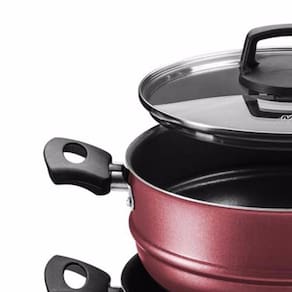 Características: utilizando antiaderente de ultima geração e com 5 camadas. Produto desenvolvido para efetuar refeições completas, utilizando apenas uma boca de fogão, com agilidade e praticidade. Ideal para o preparo em sua base daquela deliciosa Carne, Peixe, Arroz e etc... Em sua parte superior efetuar aquele delicioso refogado, legumes no vapor entre outras delícias, deixe sua imaginação a toda.