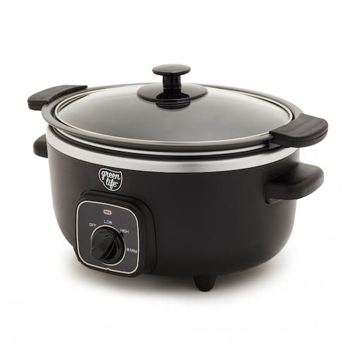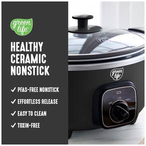 A Panela de Cozimento Lento GreenLife torna simples preparar refeições deliciosas sem preocupações. Sua panela removível de 3,31 litros é perfeita para sopas, ensopados, chili e muito mais, enquanto o design compacto economiza espaço no balcão e nos armários. A panela removível pode ser usada no fogão e no forno até 204°C, permitindo começar com uma selagem rápida para construir sabor, e depois cozinhar lentamente até a perfeição. O revestimento saudável de cerâmica antiaderente da GreenLife facilita a limpeza e é livre de PFAS para refeições mais saudáveis, do café da manhã até a noite. O seletor de controle simples apresenta configurações de Baixo, Alto e Manter Aquecido para combinar com sua refeição e sua agenda, enquanto a tampa de vidro transparente permite monitorar sua comida sem perder calor. Quando sua criação estiver pronta, gire o seletor para Manter Aquecido para manter aquele sabor fresco e servir na hora certa. Além disso, a panela removível e a tampa são ambas seguras para lava-louças para uma limpeza fácil. CAPACIDADE PERFEITA DE 3.5 LITROS projetada para cozinhar no dia a dia sopas, ensopados, chili, assados e muito mais. Além disso, o tamanho conveniente economiza espaço sem comprometer o sabor. PANELA PRONTA PARA O FOGÃO A panela leve pode ser removida para uso no fogão e forno até 204°C, permitindo começar com uma selagem e depois cozinhar lentamente para obter mais sabor. REVESTIMENTO DE CERÂMICA ANTIADERENTE SAUDÁVEL O revestimento saudável e fácil de limpar de cerâmica antiaderente da GreenLife oferece liberações sem esforço com uma limpeza rápida. LIVRE DE TOXINAS O revestimento de cerâmica antiaderente livre de PFAS da GreenLife proporciona refeições sem preocupações. SELETOR FÁCIL DE USAR 3 Configurações de Calor Baixo, Alto, Manter Aquecido ENCONTRE A TEMPERATURA CERTA Se você precisa cozinhar em fogo baixo e lento ou deseja acelerar as coisas, as 3 configurações de temperatura tornarão suas refeições simples. TAMPA DE VIDRO TRANSPARENTE Uma tampa de vidro transparente permite que você acompanhe sua criação. FÁCIL DE LIMPAR Limpe a tampa e a panela com um pano e/ou coloque na lava-louças para sujeiras difíceis. FUNÇÃO DE MANTER AQUECIDO Gire o seletor para Manter Aquecido para manter sua refeição quente e pronta para servir sem ressecar. ALÇAS LATERAIS DURÁVEIS As alças frias ao toque proporcionam uma aderência segura e firme para transferências sem problemas.