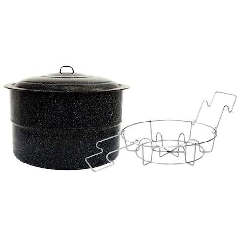 Granite Ware Lata de banho de água com suporte dobrável, 33 litros - Panela de aço esmaltado durável para conservas e cozimento eficientes, superfície antiaderente - Segura para fogões a gás e
