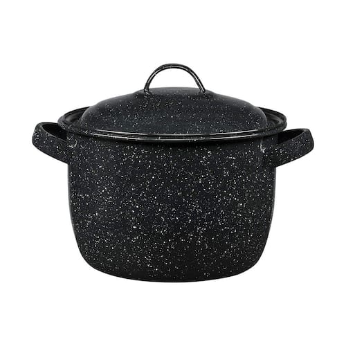 Introducing this 4-Quart Bean Pot, a versatile kitchen essential that combines durability, functionality, and a classic design. Crafted with porcelain enamel on steel, this speckled black pot features a non-porous, naturally non-stick surface that ensures safe and easy cooking. The porcelain enamel is chip-resistant, providing you with a long-lasting piece of cookware that can withstand frequent use without losing its integrity. Designed for those who love making hearty, slow-cooked meals, the 4-quart capacity is ideal for creating everything from baked beans to stews and soups. The steel core of the pot ensures even heat distribution, so your meals are cooked thoroughly and evenly, whether you're simmering over a stove or cooking by the fire. With its lightweight build, the bean pot is easy to handle, making it a practical choice for everyday use or special occasions. Safety is key when it comes to preparing family meals, and this pot delivers. It’s free from PFOA, PTFE, and other harmful chemicals, offering a non-stick surface that doesn’t interact with your food, allowing the natural flavors of your dishes to shine through. Additionally, cleanup is a breeze. The glass-like surface resists stubborn food sticking, so you can easily wash it by hand after use. While this bean pot is not suitable for induction or glass stovetops, its versatility on traditional stovetops and even open fires makes it a must-have in any kitchen. this 4-Quart Bean Pot brings both convenience and reliability to your cooking routine, making it an essential addition to your cookware collection. Whether you’re preparing a hearty stew for a family dinner or slow-cooking beans for a BBQ, this durable, chip-resistant pot is ready to help you create delicious meals with ease.