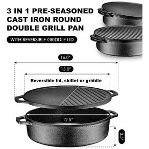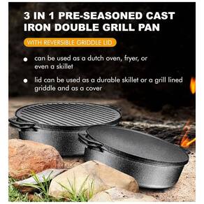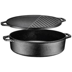 TAMPA DE MÚLTIPLAS COZINHAS VERSÁTIL REVERSÍVEL O que poderia ser melhor do que uma grelha reversível, frigideira e um forno holandês, tudo em uma panela A tampa reversível e a assadeira redonda multi fogão 6.8 Quart podem ser utilizadas de diferentes maneiras. A frigideira pré temperada de ferro fundido com tampa pode ser usada como forno holandês, fritadeira, grelha e frigideira. As possibilidades são infinitas FÁCIL DE LIMPAR A PANELA NÃO STICK Os alimentos não grudam na grelha e na frigideira e a limpeza é uma brisa por causa da característica antiaderente do interior e do exterior da grelha de ferro fundido da assadeira. O revestimento antiaderente permite cozinhar com menos óleo para refeições mais saudáveis. MESMO PANELA DE DISTRIBUIÇÃO DE CALOR Os recursos dinâmicos da panela com tampa da chapa para cozinhar 3 em 1 da Bruntmor são essenciais para o cozinheiro doméstico. A comida definitivamente teria um sabor perfeito quando cozinhada uniformemente. Além disso, esta frigideira não só distribuirá e aquecerá os alimentos por igual, mas também reterá o calor igualmente. CONSTRUÍDO PARA RESISTENTER A ALTAS TEMPERATURAS Sizzle ou selar suas refeições favoritas e melhorar sua cozinha geral Esta grelha de frigideira reversível apresenta extrema durabilidade. Esta grelha multiusos funciona com todos os tipos de fontes de calor. Esta assadeira pode suportar a maior chama no fogão, no forno a 500F, ou mesmo em brasas de fogueira de acampamento Marca: Não Informado