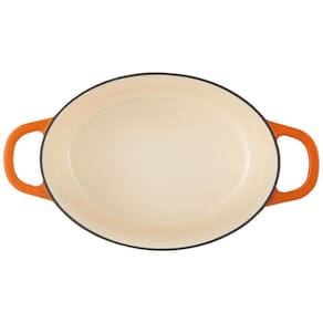 Panela de ferro fundido de formato oval esmaltada ferro fundido forno holandês, 7 litros, azul safira com tampa Recomenda se lavar à mão Perfeito para cozinhar lentamente, ferver, refogar, assar e muito mais A construção durável em ferro fundido retém e distribui o calor uniformemente O acabamento em esmalte de porcelana é fácil de limpar e naturalmente antiaderente Marca: Não Informado