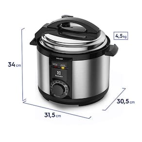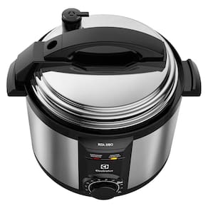 Super segura com 9 dispositivos de seguran?a 1. Travamento autom?tico da tampa. 2. Travamento mec?nico da tampa. 3. Pino de verifica??o na tampa. 4. Controle de press?o. 5. Dispositivo de Al?vio de press?o. 6. V?lvula de al?vio de press?o. 7. Cobertura anti-bloqueio da v?lvula limitadora de press?o. 8. Termostato. 9. Fus?vel t?rmico