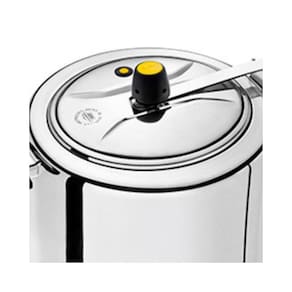 Fabricada em alumínio polido, a panela possui fechamento interno e cabo em baquelite, além de válvula de segurança, pino de saída de vapor e anel de vedação, garantindo um cozimento confiável e controlado. Indicada para fogão a gás ou elétrico, é fácil de higienizar e segue as normas de segurança vigentes.