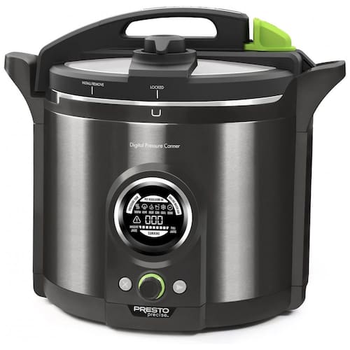 Especificações do produto: Marca: Presto Capacidade: 11,4 litros Material: Aço Inoxidável Cor: Aço Inoxidável Preto Acabamento: Aço Inoxidável Preto Dimensões: 35,6 cm (Diâmetro) x 43,2 cm (Largura) x 40,6 cm (Altura) Função Especial: Programável Potência: 1485 watts Peso: 0,45 kg Método de Controle: Toque Tipo de Controle: Botões de Pressão Modo de Operação: Automático Compatível com Lava-louças: Não Voltagem: 110 volts Tipo de Fechamento: Fecho com Trava Código UPC: 075741021447 Fabricante: Presto Modelo: 02144