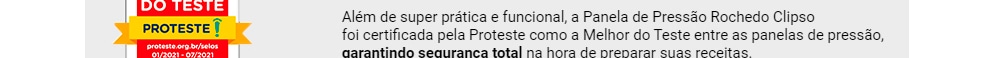 Para tornar o seu dia a dia na cozinha muito mais fácil, a Rochedo Clipso vem com exclusivo sistema de abertura e fechamento da tampa. Você vai abri-la e fechá-la com apenas uma mão. Quando o assunto é segurança, essa panela também dá um show. Ela conta com recurso que impede sua abertura, sempre que estiver sob pressão.