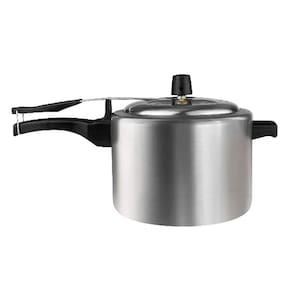 Conteúdo da embalagem: 1 Panela de Pressão com cabo de corpo e asa de Baquelite Antitérmico; 1 Válvula Controladora de Pressão;1 Borracha de Vedação; 1 Tampa com Válvula de Segurança Repetitiva, cabo de plastico e Pino de saída de Vapor.