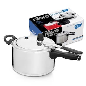 Dimensões: Comprimento: 45cm Altura: 18,2cm Largura: 22,8cm Panela de Pressão Nigro Expressa de 4,5lts - alumínio Polido por fora e lixado por dentro, 3 sistemas de segurança, tampa modelo interno, acompanha manual, cabos e alças em baquelite com distanciador de chamas