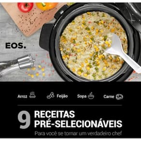 A Panela de Pressão Elétrica EOS é perfeita para quem ama cozinhar para toda a família ou receber amigos em casa. Com uma impressionante capacidade de 5 litros, você terá espaço de sobra para preparar aquelas receitas especiais e deliciosas que todo mundo adora. Seja um suculento assado, um saboroso cozido ou até mesmo uma feijoada completa, a EOS é a aliada ideal para fazer bonito na cozinha. Chega de se preocupar com panelas pequenas e limitações na hora de cozinhar para muitas pessoas, com a EOS, você terá liberdade para explorar sua criatividade culinária e surpreender a todos com verdadeiras obras-primas gastronômicas.