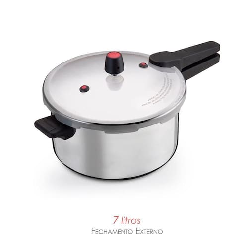 Panela 7 Litros Fechamento Externo Panela - Sua Aliada na Cozinha Fechamento externo para máxima segurança durante o cozimento Material super resistente que conserva aromas e sabores Alumínio como condutor de calor, cozinhando os alimentos mais rapidamente Leve e confortável, ideal para transportar onde precisar Cabo e aba em baquelite, duráveis e resistentes a altas temperaturas Dois apitos na parte superior da tampa para maior praticidade A Panela é perfeita para facilitar seu dia a dia na cozinha, proporcionando refeições deliciosas e seguras. Desfrute do prazer de cozinhar com eficiência Especificações: Material: Aço Polido Dimensões: Diâmetro: 40cm x Altura: 16cm Peso: 2,180kg Capacidade: 7 Litros Cor: Cinza Conteúdo: 01 Panela 7 Litros com fechamento externo Marca: Não Informado Ean: 7890694718151