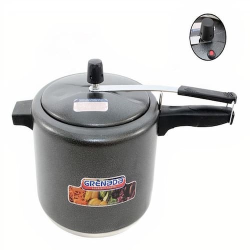 Panela de pressão segura e de alta qualidade, confeccionada em alumínio , fabricada pela indústria de alumínios grenada, tradicional empresa do setor, com 21 anos de atuação;