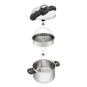 Compatível com indução e demais fontes de calor, a panela de pressão possui fundo triplo que distribui o calor uniformemente, resultando em um cozimento mais rápido e homogêneo.