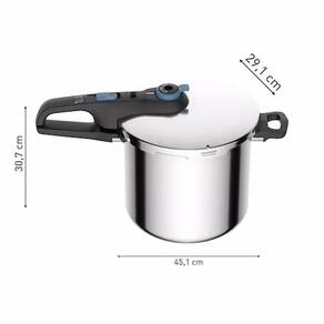 Essa panela possui dois níveis de pressão, para preservar os nutrientes e garantir o cozimento adequado: um para ingredientes mais robustos, como proteínas e grãos, e outro para preparar alimentos mais delicados, como vegetais.