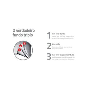 Panela Aço Inox 4,5L 22CM Solar Tramontina A Panela Tramontina em Aço Inox Fundo Triplo 22 cm diâmetro 4,5 L com Cozi Vapore em Aço Inox da linha Solar é a escolha certa para quem deseja ter uma cozinha bem equipada, prática e bonita. A Panela da Tramontina, oferece alta segurança e durabilidade para o uso diário, pois é produzida com aço inox, não soltando nenhum resíduo nos alimentos, além de contar com fundo triplo aço inox + alumínio + aço inox , que distribui o calor por igual, oferecendo um cozimento uniforme e rápido dos ingredientes. Conta com 5 dispositivos de segurança, que trabalham de forma integrada. Acompanha recipiente para cozinhar no vapor, medidos e capacidade interno, alça e cabo antitérmico, possibilitando um manuseio confortável e evitando possíveis queimaduras. Um item ideal para toda a cozinha e para quem deseja preparar receitas incríveis. Sistemas de Segurança: Pino Indicador Trava de Segurança Válvula de Segurança Válvula Seletora Escape de Segurança Recomendações de uso A capacidade volumétrica máxima para cozimento é de 2/3 da capacidade total da peça. Para que sua panela em aço inox fique sempre bonita e com brilho, recomendamos que seja lavada somente com detergente e esponja. A Tramontina desenvolveu uma pasta especial para polir e remover manchas nos produtos de aço inoxidável, que está disponível nos principais pontos de venda. Evite deixar alimento na panela por muito tempo. O sal também pode provocar manchas e até corrosão. Se surgirem manchas brancas devido ao excesso de cloro na água ou amido dos alimentos, limpe-a com um pouco de vinagre ou suco de limão. Chamas muito forte podem causar alteração na cor do aço, provocando manchas douradas ou azuladas. Recomenda-se utilizar fogo baixo. Só exponha sua panela a chamas de tamanho igual ou inferior a seu fundo. Não use produtos abrasivos, pois eles podem riscar o aço inoxidável. O anel de vedação foi desenvolvido especialmente para as panelas Solar. O anel de vedação deve ser substituído sempre que ficar rígido ou quebradiço. Período de validade do anel de vedação: 2 anos. Para uma maior vida útil deste item, unte-o periodicamente com óleo de cozinha. Antes de usar sua panela Solar Tramontina pela primeira vez, leia atentamente as indicações contidas no manual de instruções e guarde-o para consultas futuras. Especificações: Marca: Tramontina Modelo: Panela Aço Inox 4,5L 22CM Solar Tramontina Linha: Solar Capacidade: 4,5L Diâmetro: 22cm Material: Aço Inox