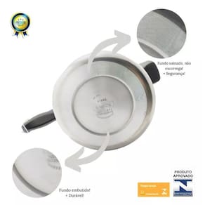 Feita com liga de alumínio de alta qualidade possui, em sua versão antiaderente, com classificação A, ou seja, ótima, determinada pelo Inmetro. É também livre de PFOA ou seja, sem elementos químicos nocivos à saúde. Sua versão Polida antiaderente tem um design diferenciado que certamente fará toda a diferença em sua cozinha. Possui cabo anatômico em baquelite antitérmico válvulas especiais e sistema de segurança diferenciados
