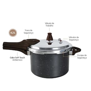 Panela Brinox Pressure 4,2L - Compatível com Fogão por Indução A Panela Brinox Pressure 4,2L é a escolha ideal para quem busca praticidade e segurança na cozinha. Feita com materiais de alta qualidade, ela é perfeita para preparar alimentos com rapidez e eficiência, economizando tempo no seu dia a dia. Compatível com fogões a gás, elétricos, vitrocerâmicos e por indução, essa panela oferece versatilidade e garante um cozimento uniforme graças à sua base tripla, que distribui o calor de maneira eficiente. Características principais: Capacidade: 4,2 litros - ideal para preparar refeições para a família ou amigos. Compatibilidade: Funciona em todos os tipos de fogão, incluindo indução. Segurança: Possui sistema de segurança com 5 dispositivos que proporcionam total tranquilidade durante o uso. Durabilidade: Fabricada em alumínio resistente, com revestimento antiaderente que facilita a limpeza e evita que os alimentos grudem. Design Moderno: Acabamento sofisticado que agrega elegância à sua cozinha. Economia de Energia: Cozinha alimentos rapidamente, reduzindo o consumo de energia. Seja para preparar feijões, carnes ou legumes, a Panela Brinox Pressure é sua aliada para refeições saborosas e saudáveis. Marca: Não Informado Ean: 7898762841510