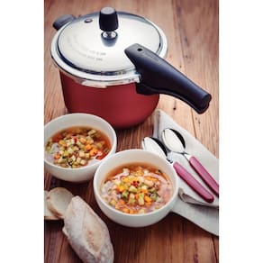 Já pensou em ter em sua cozinha uma panela de pressão eficiente, segura e resistente, que além de colorida e linda, também, não grude os alimentos? Pois, a Panela de Pressão Tramontina Vancouver em Alumínio com Revestimento Interno e Externo Antiaderente Starflon Max Vermelho 20 cm de diâmetro 4,5 L é tudo isso e muito mais! Com um lindo revestimento interno e externo em antiaderente Starflon Max na cor vermelha, ela será a estrela do seu fogão. Ela é produzida em alumínio com espessura que proporciona o cozimento rápido e uniforme dos alimentos e vem na vibrante cor vermelha. É uma panela que possui alça e cabos antitérmicos para facilitar o manuseio e conta com três válvulas de segurança que oferecem maior proteção durante o uso. Com certeza, a escolha perfeita para completar seu ambiente e ser a protagonista em sua cozinha!