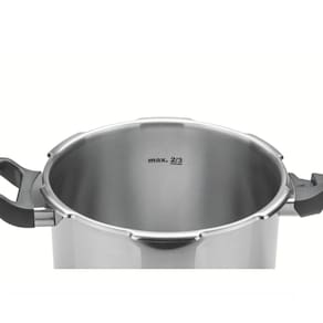 Agora ficou mais fácil cozinhar aquele feijão, lentilha, carne, batatas ou outros alimentos. A Panela de Pressão Tramontina Brava em Aço Inox com Fundo Triplo 20 cm 4,5 L vai representar mais praticidade e qualidade em sua cozinha. O utensílio é produzido em aço inox e pode ser utilizada em diferentes tipos de fogão como gás, elétrico, vitrocerâmico ou indução. Com cabo e alça antitérmicos, a panela proporciona mais segurança e facilidade no manuseio. Outro diferencial da peça é o fundo triplo (aço inox + alumínio + aço inox), que distribui o calor uniformemente, deixando o cozimento mais rápido e economizando energia, além de possibilitar que os alimentos fiquem aquecidos por mais tempo. Com sistema de descompressão e também medidor de capacidade internamente ficará mais fácil o controle das quantidades dos alimentos. Qualidade e eficiência é com os produtos Tramontina!