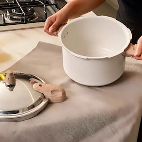 O design moderno na cor Vanilla valoriza a cozinha, enquanto os cabos e alças em baquelite soft touch oferecem conforto, ergonomia e proteção térmica durante o uso.