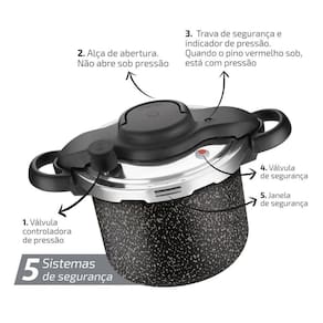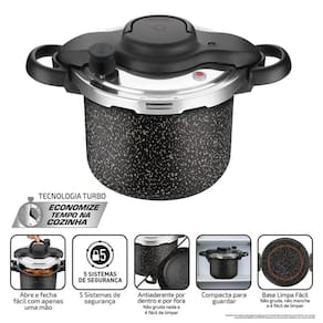 Panela Rochedo Clipso Stone Pro 4,5L Fechamento Externo Descrição: Panela Clipso Stone Pro 4,5L Fechamento Externo - Mais praticidade e segurança para sua cozinha Com exclusivo sistema de abertura e fechamento que funciona com apenas uma mão, esta panela une tecnologia e design moderno com efeito pedra. Possui 5 sistemas de segurança integrados, revestimento antiaderente interno e externo, e base limpa fácil. Compacta para otimizar espaço, é ideal para cozinhar com máxima eficiência e tranquilidade. Características: Sistema de abertura/fechamento com uma mão; 5 sistemas de segurança: trava de alça, válvula controladora, indicador , válvula de segurança e janela de segurança; Revestimento antiaderente interno e externo livre de PFOA ; Base limpa fácil que não gruda nem mancha; Design compacto com efeito pedra; Compatível com fogões a gás, vitrocerâmico e elétrico exceto indução ; Composição: 1 - Panela Clipso Stone Pro 4,5L com Tampa Especificações: Marca: Rochedo; Modelo: Clipso Stone Pro; : 3 meses. ---- Aqui na Casa & Tendência você encontra os melhores utensílios domésticos e tudo que você precisa para sua cozinha ---- Marca: Não Informado