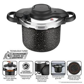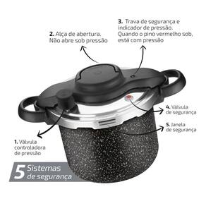 Panela Rochedo Clipso Stone Pro 4,5L Fechamento Externo Descrição: Panela Clipso Stone Pro 4,5L Fechamento Externo - Mais praticidade e segurança para sua cozinha Com exclusivo sistema de abertura e fechamento que funciona com apenas uma mão, esta panela une tecnologia e design moderno com efeito pedra. Possui 5 sistemas de segurança integrados, revestimento antiaderente interno e externo, e base limpa fácil. Compacta para otimizar espaço, é ideal para cozinhar com máxima eficiência e tranquilidade. Características: Sistema de abertura/fechamento com uma mão; 5 sistemas de segurança: trava de alça, válvula controladora, indicador , válvula de segurança e janela de segurança; Revestimento antiaderente interno e externo livre de PFOA ; Base limpa fácil que não gruda nem mancha; Design compacto com efeito pedra; Compatível com fogões a gás, vitrocerâmico e elétrico exceto indução ; Composição: 1 - Panela Clipso Stone Pro 4,5L com Tampa Especificações: Marca: Rochedo; Modelo: Clipso Stone Pro; : 3 meses. ---- Aqui na Casa & Tendência você encontra os melhores utensílios domésticos e tudo que você precisa para sua cozinha ---- Marca: Não Informado