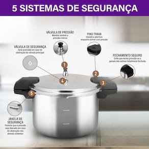 A Panela de Pressão de Alta Capacidade Rochedo Pro 15L é ideal para grandes preparos, conta com 5 sistemas de segurança e eleva o nível da cozinha profissional com total segurança. Conheça os diferenciais dessa linha: