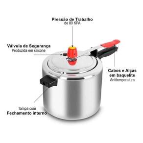 A Panela de Pressão de 7 Litros é o tamanho ideal pra toda a família, cozinhando alimentos rapidamente com sabor e na praticidade. Confira a Panela de Pressão Polida da Eirilar. Nossa panela é feita de alumínio na cor prata, com revestimento externo da panela de pressão é polida e capacidade para 7 litros. A panela de pressão possui fechamento interno com borracha de vedação e válvula de silicone que garante extrema segurança para o manuseio dos alimentos. Os cabos e alças da Panela de Pressão Eirilar de 7 litros são confeccionados em baquelite que resistem ao calor e ao fogo.
