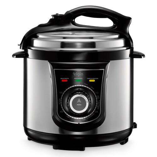 Prepare os melhores pratos com a Panela de Pressão Elétrica Inox Elgin. Com capacidade para até 4,0L e potência de 840W na voltagem 110V, ela é adequada para elaborar diversas receitas. Possui controle de fácil programação, basta girar o botão do timer até o tempo desejado e pronto! Também apresenta 10 funções de preparo pré-ajustados para auxiliar no cozimento e trazer mais praticidade. Além disso, tem a função Manter Aquecido permitindo que o alimento continue quente e pronto para servir.
