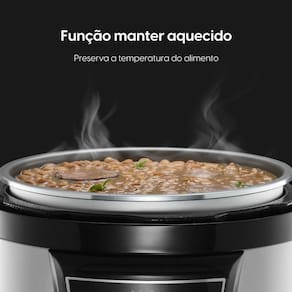 10 funções de preparo pré-ajustadas, função Manter Aquecido, 9 dispositivos de segurança, cuba antiaderente, timer de 60 minutos, trava na tampa, válvula de segurança.Lâmpada piloto