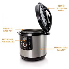 Apresentando a Panela de Pressão Digital MegaChef de 12 litros, a escolha ideal para quem busca praticidade e rapidez na cozinha!