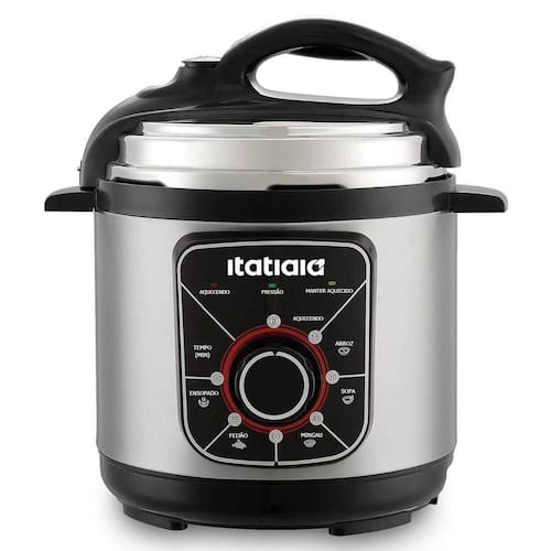 A Panela de pressão elétrica essencial da Itatiaia também oferece 5 funções pré-programadas, timer de até 90 minutos, desligamento automático com aviso sonoro e indicador sonoro de preparo, além de sua capacidade de 3 litros, seu acabamento preto com inox e seus pés antiderrapantes.