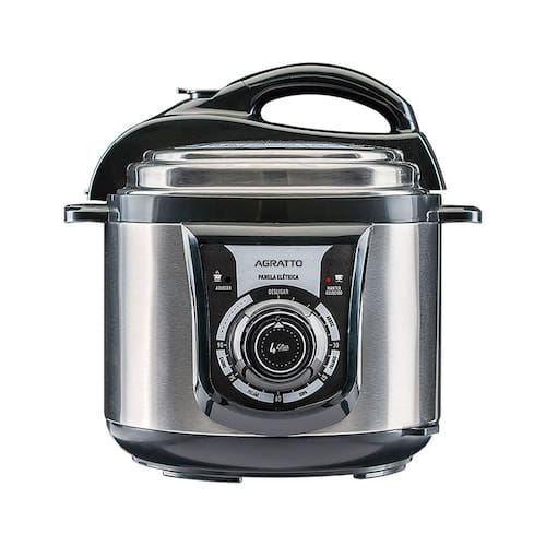 Panela de Pressão Elétrica Agratto 4 litros, 800W, com 5 programações pré-definidas, função de manter aquecido, revestimento antiaderente e trava de segurança.Lâmpada piloto