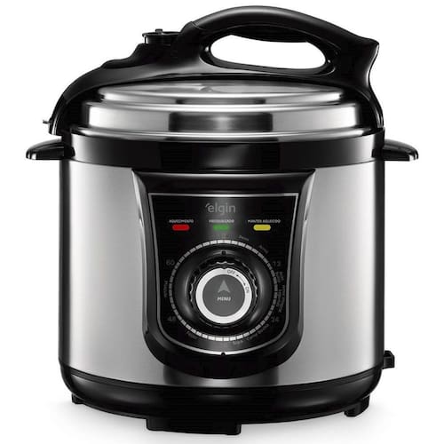 Panela de Pressão Elétrica Elgin 4L, 840W, função manter aquecido, 9 dispositivos de segurança, cuba antiaderente, acompanhada de colher e copo medidor.Lâmpada piloto