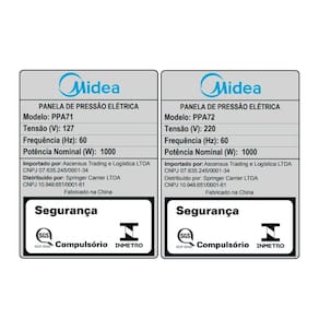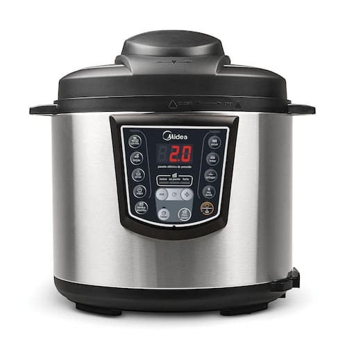 Material externo em aço inoxidável escovado, panela interna antiaderente, timer até 24h, display digital, 9 dispositivos de segurança, desligamento automático, função Meu Sabor, Função Minha Receita, Função Manter Aquecido, Cozimento Lento, Pressão máxima 90kPa.Lâmpada piloto