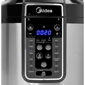 A Panela de Pressão Elétrica MasterSteam 6L Midea vai te surpreender. Com Função Vapor, conta com acessório exclusivo para fazer receitas saudáveis e saborosas. Com 9 dispositivos de segurança, possui display digital em LED, 12 funções pré-definidas e tamanho família, com 6L de capacidade. Possui função Adiar Início, Timer e desligamento automático ao fim de qualquer função selecionada. Sua panela de cozimento é feita de material antiaderente e seu material externo é aço inoxidável, garantindo a durabilidade do produto. Acompanha colher, concha, copo medidor, rack e bandeja para vapor.