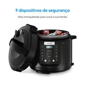 A Panela de Pressão Digital Elétrica Multi Cook 220V reúne uma série de características para aprimorar sua experiência culinária. Com uma ênfase notável na segurança, ela apresenta 9 dispositivos de segurança para garantir sua tranquilidade durante o uso. Além disso, seu painel digital inovador oferece 14 funções pré-programadas, facilitando o preparo de refeições com praticidade. Você pode planejar e agendar suas receitas com um timer ajustável de até 24 horas.