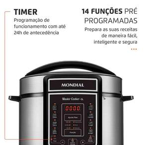 Tem temporizador (timer). A panela elétrica de pressão digital master cooker pe38 foi desenvolvida para uso doméstico, residencial.