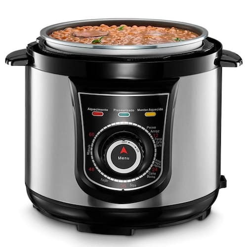 Panela de pressão elétrica Elgin com capacidade para até 4,0 l, tamanho adequado para o preparo da maioria das receitas. Potencia de 840w. Controle de fácil programação, basta girar o botão do timer até o tempo desejado e pronto Função manter aquecido que mantém o alimento preparado pronto para servir. Possui 9 dispositivos de segurança para evitar acidentes. Cuba antiaderente de fácil limpeza e que pode ir para máquina de lavar louças. Acompanha colher e copo medidor. Características: - Marca: Elgin - Modelo: 42PPR1001000 Especificações: - Panela de Pressão Elétrica - Controle de Fácil Programação - Função Manter Aquecido - 9 Dispositivos de Segurança - Cuba Antiaderente que pode ir para a maquina de lavar louças Potência (W): - 840W Tensão (V): - 127V Capacidade: - 4 L Consumo (KW/ H): - 0,84 KW/h Conteúdo da Embalagem: - 1x Panela de Pressão - 1x Cuba com revestimento antiaderente - Manual de instruções - 1x Colher para servir - 1x Copo medidor Garantia 1 ano de garantia Peso 4180 gramas (bruto com embalagem)