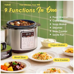 Simplifique sua cozinha e economize muito com a Panela de Pressão Fullwill 9 em 1! Esta potência substitui sua panela de pressão, panela elétrica, panela de arroz, iogurteira, fazedora de bolos, frigideira, sistema de vaporização, aquecedor de alimentos e fabricante de sopas. Cozinhar sem esforço com 12 Programas Inteligentes que preparam refeições perfeitas com o toque de um botão! Escolha entre Cozimento Rápido, Cozimento Lento, Aves, Vapor, Mingau, Sopa, Feijão/Chili, Bolo, Carne/Ensopado, Arroz/Grãos, Refogar ou Iogurte. Limpeza fácil e culinária mais saudável com a panela interna durável antiaderente livre de PFOA, carcaça em aço inoxidável resistente a impressões digitais e acessórios laváveis na lava-louças. Prepare refeições instantâneas em uma única panela e tenha o jantar pronto até 70 mais rápido do que o método tradicional! Cozinhe com tranquilidade e segurança, com mais de 10 recursos de segurança embutidos, incluindo proteção contra superaquecimento, trava de segurança na tampa e controle de pressão. Manual detalhado e livro de receitas inclusos para facilitar o uso. Tamanho familiar de 6 litros, perfeito para 4-6 pessoas, refeições familiares ou preparação semanal. Cozinhe uma vez, sirva a todos.