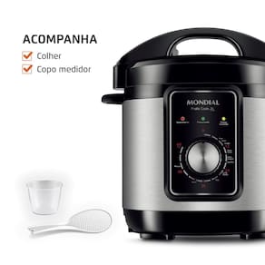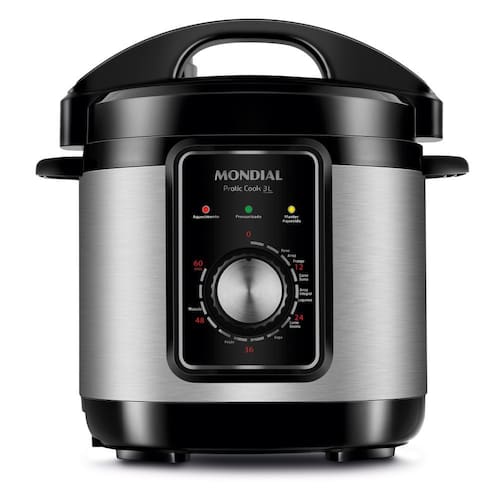 A Panela de Pressão Elétrica Pratic Cook 3L Mondial vai te surpreender com mais praticidade e sabor nas receitas! Com capacidade de 3 litros, permite o preparo de carnes, feijão, legumes, pudim e muito mais. Possui válvula de segurança, cuba antiaderente removível, botão para programação de tempo e função Manter Aquecido, para você servir os alimentos quentinhos por mais tempo. Saiba mais sobre a PE-47-3L-I da Mondial: