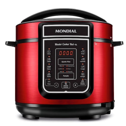 Panela de pressão elétrica mondial pe-39 5 litros 900w 220v Prepare diversas receitas com maior praticidade com a panela de pressão elétrica mondial pe-39 5 litros. Produzida em aço inox com pintura em vermelho, ela traz cor e sofisticação para a sua cozinha. São 14 funções programáveis e timer que permitem programar o funcionamento com até 24h de antecedência.