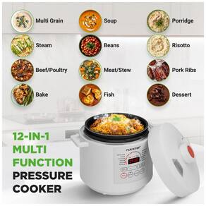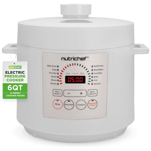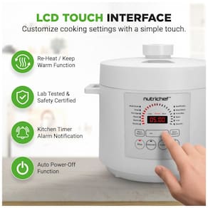 Desfrute de uma culinária eficiente e versátil com a Panela de Pressão NutriChef, que conta com 9 modos predefinidos. Prepare refeições com precisão, simplicidade e rapidez, podendo cozinhar, assar, cozinhar no vapor, assar, grelhar e refogar. Com controle digital inteligente, programe seu cozimento com ajuste de tempo e temperatura no display LED digital, garantindo o melhor sabor. Prepare suas refeições até 70 mais rápido com essa panela elétrica de 5,7 litros, possibilitando tempos de cozimento de até 240 minutos, ideal para a correria do dia a dia. Segura e resistente a manchas, a Panela de Pressão Elétrica NutriChef possui estrutura em aço inoxidável e proteção embutida com desligamento automático, garantindo durabilidade e segurança. Um kit completo de cozinha que inclui copo medidor e colher de arroz para facilitar o preparo das refeições. Com 1000W de potência, fabricada com aço inoxidável, liga de metal de ferro e ABS, essa panela digital é uma adição confiável à sua cozinha.
