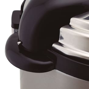 Ela possui ainda seis sistemas de segurança para que você possa cozinhar tranquilamente, livre de preocupações: Controlador de pressão, Válvula de segurança contra entupimento, Pino de segurança para tampa instalada errada, dispositivo contra superaquecimento, dispositivo interno que desliga o produto em caso de sob-pressão e limitador de temperatura.