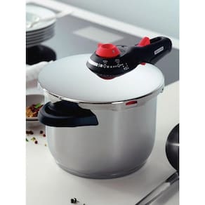 Nada como uma carne de panela cheia de sabor e que se desmancha, não é mesmo? Com a Panela de Pressão Tramontina em Aço Inox você poderá realizar qualquer sonho culinário que tenha. Produzida em aço inox com fundo triplo distribui o calor, proporcionando um cozimento mais rápido e uniforme dos alimentos. Fácil de usar e limpar, muito mais durável, com economia de tempo e energia, trás um livro de receitas, válvula seletora de pressão, pino indicador de pressão, trava de , válvula de e escape de . Com alça e cabo antitérmico e 5 dispositivos de que trabalham de forma integrada, garantem e facilidade no manuseio.